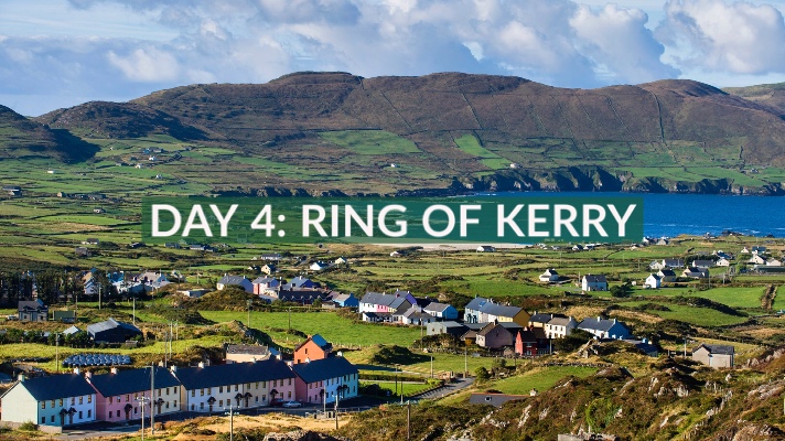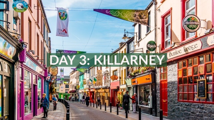 Day 3: After an Irish breakfast, we head down to the Kingdom of Kerry. With its craggy coastline, striking scenery and rich historical sites, you’re spoiled for choice in this beautiful county. Once we reach the town of Killimer, we hop onto the Shannon Ferry making the journey into County Kerry where you experience the rugged nature of land and sea as you – ahhh – breathe the fresh, salty sea air. Keep an eye out, you might be one of the lucky ones and catch a glimpse of some dolphins. Once across, we continue to Tralee where we’ll be visiting the Kerry County Museum. A stroll through the Medieval Experience reveals the streets of Tralee as they were in 1450 AD with all the sights, sounds and robust smells of a bustling community. We then make the short trip to the lakeside town of Killarney where you’ll have the afternoon and evening free to explore the town as you wish! After dinner, we recommend visiting J. M. Reidy’s for some live traditional music. Finally, it’s time for some rest at the Killarney Riverside Hotel where you’ll be staying the next two nights.