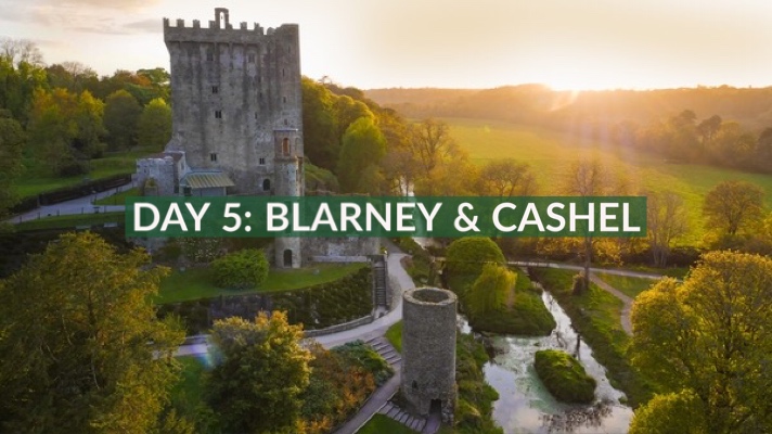 Day 5: Leaving Killarney today we head east towards Blarney Castle for a chance to kiss the legendary Blarney Stone and gain the gift of eloquence. However many legends there are of the origins of the stone, one thing is certain, the only way to experience the gift of the gab for yourself, is to kiss the stone! Hang about in Blarney Village for a spot of lunch and some shopping, after which we will make our way towards the Rock of Cashel. Legend has it the devil himself formed it when taking a bite out of a nearby mountain, breaking his teeth and then spitting the rock out which landed at the site in Cashel. However, the medieval buildings, built in 12th, 13th and 15th century, that sit on the rock are the true sight to behold. This sadly marks the end of the trip as we make our way back to Dublin.