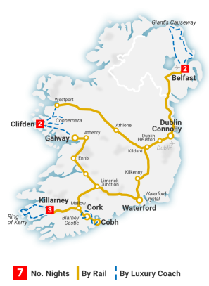 At 09:00, we depart Clifden for Westport, where we rejoin our Emerald Pullman train and depart Westport for a unique journey to Dundalk.